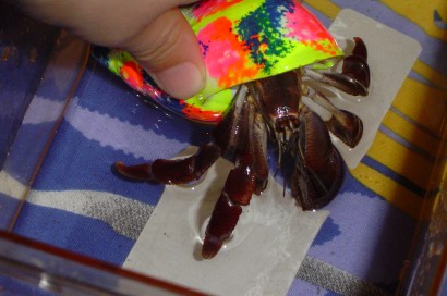 Hermit crabs need a lot more than just exercise. They need a bath! Hermit crabs need at least one bath every week. for at least two reasons, even though there is a lot more. The two reasons are so that they don't get dirty and grow mold, and because there are fruit flies that want to eat them. But the hardest part about giving them a bath is don't give them a bath with water from the faucet. Because theire allergic to our water. So you have to add AquaSafe to the water. the company that make s it is Tetra Aqua. And you can just put them in the water. If you hold them in the water upside down they may come out of their shells. But mine never did. But what you do is you leave them in the water for one minute, then take them up for a breath of air. And then put them back and swish them around a little bit. But when you put them back and leave them bubbles will start to come out. That means their living and their shells are getting cleaned out by the water. At the beach you may see hermit crabs by the water. If you kept one of those you don't need to give them a bath because that kind lives in the water. That kind does not breath air. That kind is a salt water hermit crab. |