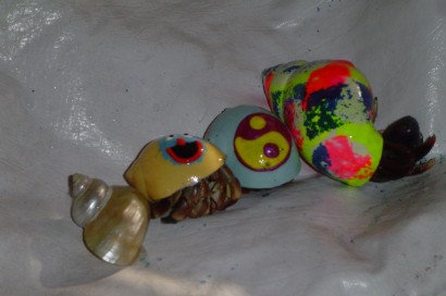 This hermit crab web site will provide for what you need and what you should do to have a hermit crab. These are my original hermit crabs, and now I have twenty. All hermit crabs need exercise. How I decide to give them exercise instead of just leaving them in their tank, I take them out and put them on my bean bag and let them crawl around, I pick them up and play with them. I do that every few days. But if you have hermit crabs you don't have to take them and put them on a bean bag. You can exercise them in other ways. You can put them in a bowl, let them crawl around, put them in their carry case. There are even more ways then that. You can do it a lot of different ways. One other way to exercise hermit crabs is to put them in your hand and let them crawl on you. But watch out for their pincers. They can pinch you and it can hurt. Trust me it can hurt a lot! |